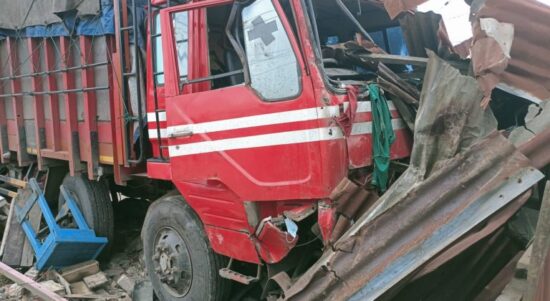 Gara-gara Ganjal tidak tepat, Truk Tabrak 3 Ruko hingga Hancur