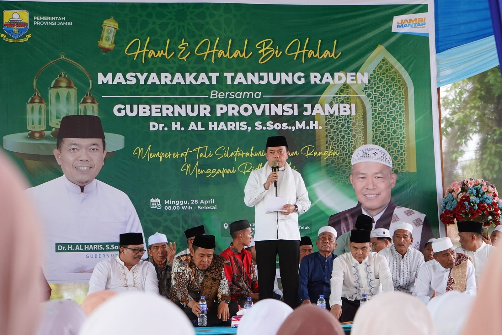 LAMANJAMBI.COM – Bertempat di Madarasah Sa’adatul Ulya Kelurahan Tanjung Raden Kecamatan Danau Teluk Seberang Kota Jambi, Gubernur Jambi H Al Haris menghadiri Haul dan Halal Bihalal bersama masyarakat Tanjung Raden, Minggu (28/04/2024).