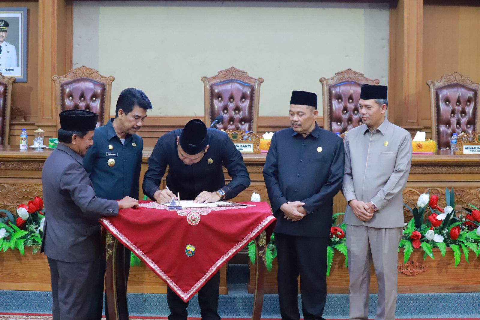 Paripurna yang dipimpin langsung oleh ketua DPRD Kabupaten Muaro Jambi, Yuli Setia Bakti itu dihadiri puluhan anggota dewan, Pj Bupati Muaro Jambi Raden Najmi, kepala OPD, Forkompinda dan undangan lainnya.