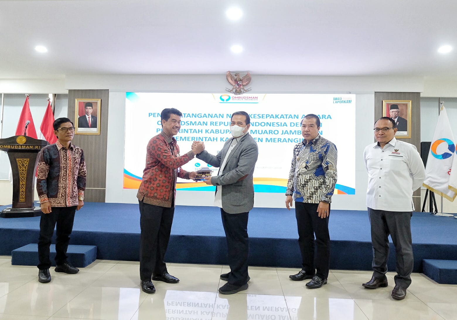 MoU yang digelar di Gedung Ombudsman RI Jakarta itu dihadiri langsung oleh Kepala Ombudsman RI Mokhammad Najih, Pj Bupati Muaro Jambi Raden Najmi.