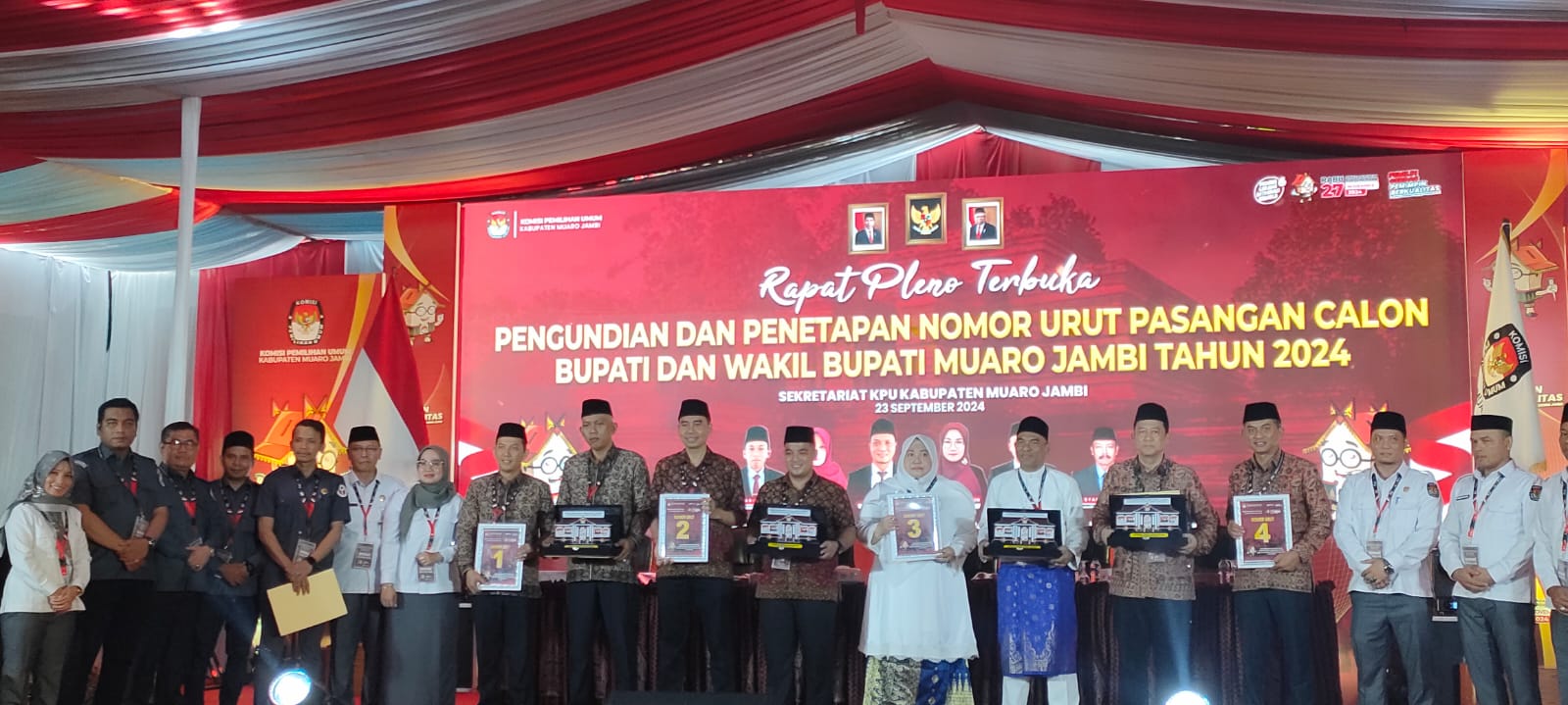 KPU Kabupaten Muaro Jambi menggelar pencabutan nomor urut pasangan calon bupati dan wakil bupati Muaro Jambi untuk Pilkada serentak 20224.