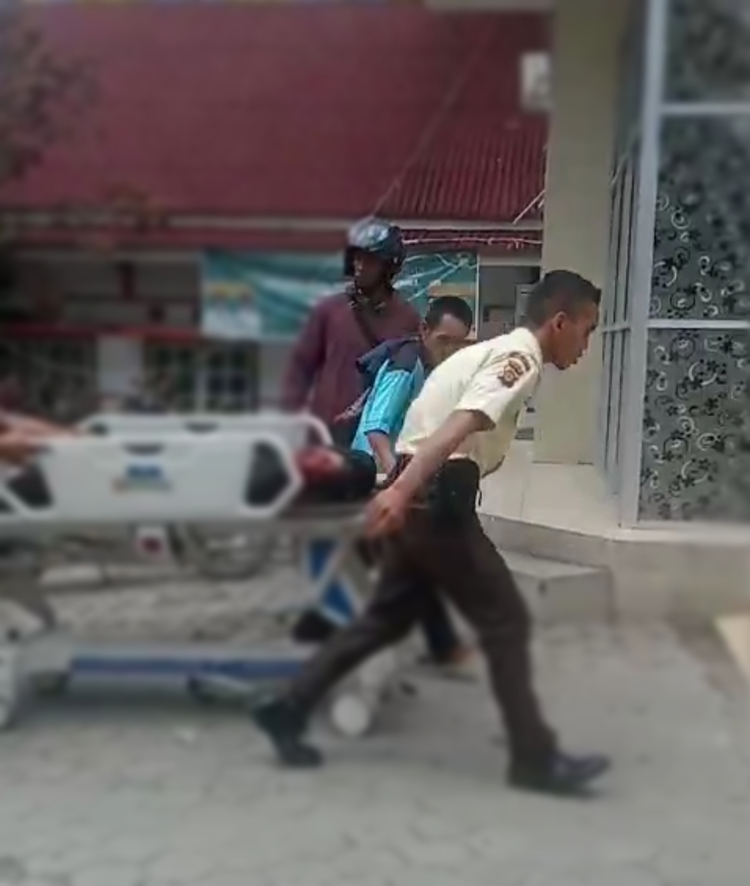 Terlihat, dari video yang berdurasi selama 22 detik itu, terlihat sejumlah orang dan petugas rumah sakit sedang berlari membawa troli emergency dengan seorang wanita terbaring dan berlumuran darah.