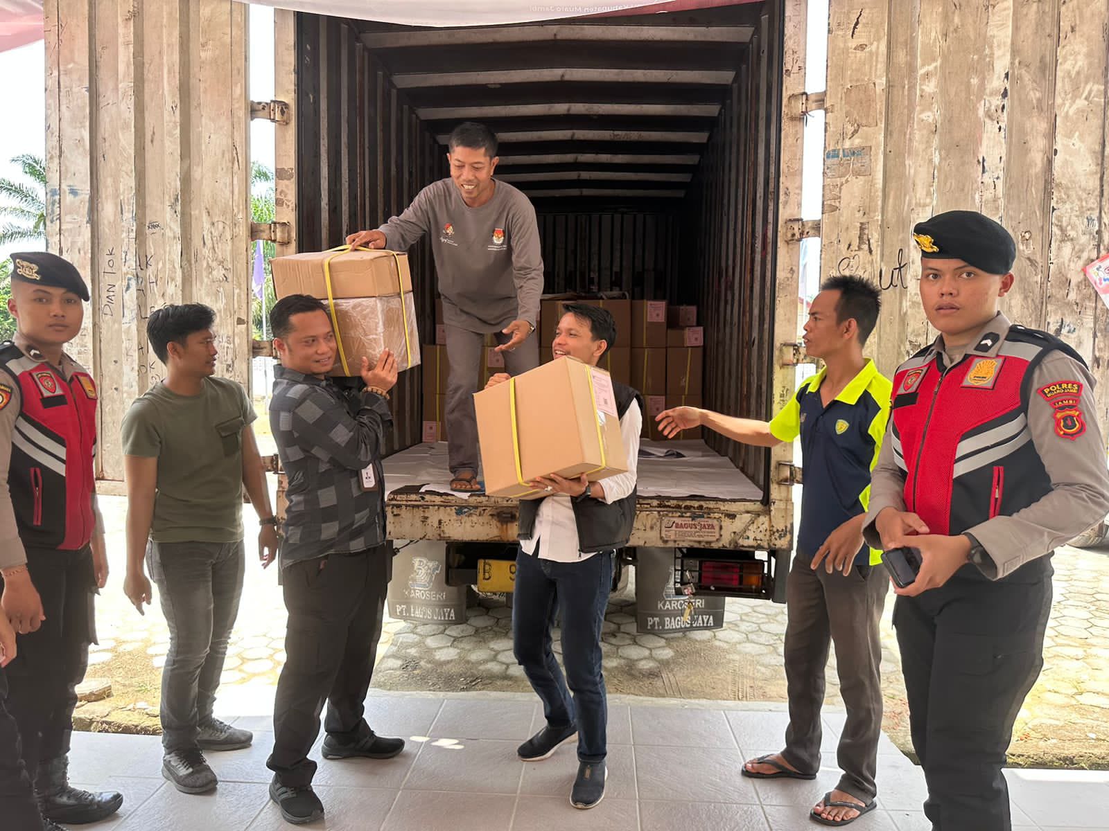 LAMANJAMBI.COM — Surat surat suara untuk pemilihan Bupati dan Wakil Bupati Kabupaten Muaro Jambi tiba di kantor Komisi Pemilihan Umum (KPU).