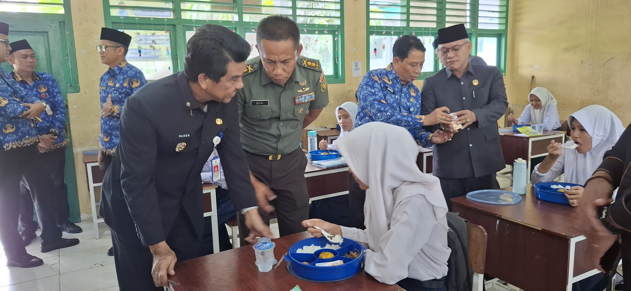 LAMANJAMBI.COM Pj Bupati Muaro Jambi, Raden Najmi bersama forkompimda Kabupaten Muaro Jambi memantau pelaksanaan Makan Bergizi Gratis (MBG) untuk sekolah di Kecamatan Jaluko.