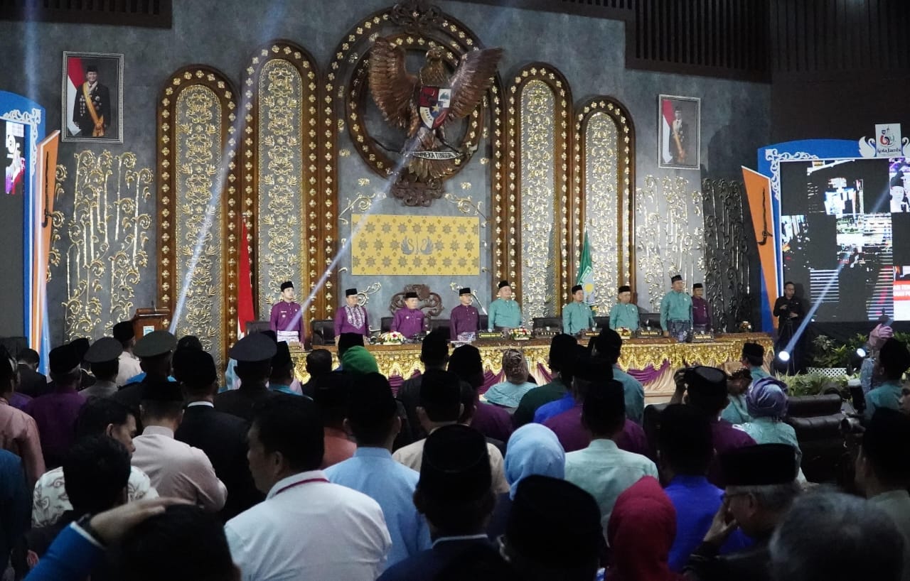 LAMANJAMBI.COM – Gubernur Jambi Dr. H. Al Haris, S.Sos. MH menyampaikan, dengan bersinergi antara Pemerintah Provinsi (Pemprov), Pemerintah Kota (Pemkot)/Pemerintah Kabupaten (Pemkab), dan Pemerintah Pusat dapat bekerja sama untuk mencapai tujuan pembangunan yang lebih baik dalam meningkatkan kesejahteraan masyarakat melalui program-program pembangunan yang terintegrasi dan berkelanjutan. Hal tersebut disampaikan Gubernur saat menghadiri Rapat Paripurna Istimewa DPRD Kota Jambi dalam rangka memperingati Hari Jadi Ke-624 Tahun Tanah Pilih Pusako Batuah Kota Jambi dan Hari Ulang Tahun (HUT) Ke-79 Pemerintah Kota Jambi Tahun 2025, bertempat di Ruang Utama Sidang Gedung DPRD Kota Jambi, Rabu (28/05/2025) pagi.
