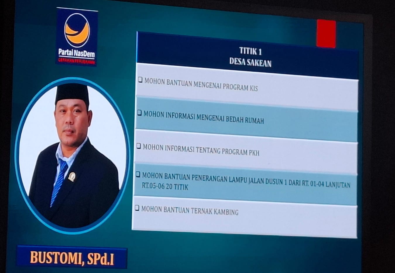 Dalam momen tersebut, Anggota DPRD Muaro Jambi, Bustomi, dari Dapil II Kabupten Muaro Jambi secara resmi menyerahkan pokok-pokok pikiran hasil serap aspirasi masyarakat dari daerah pemilihannya.